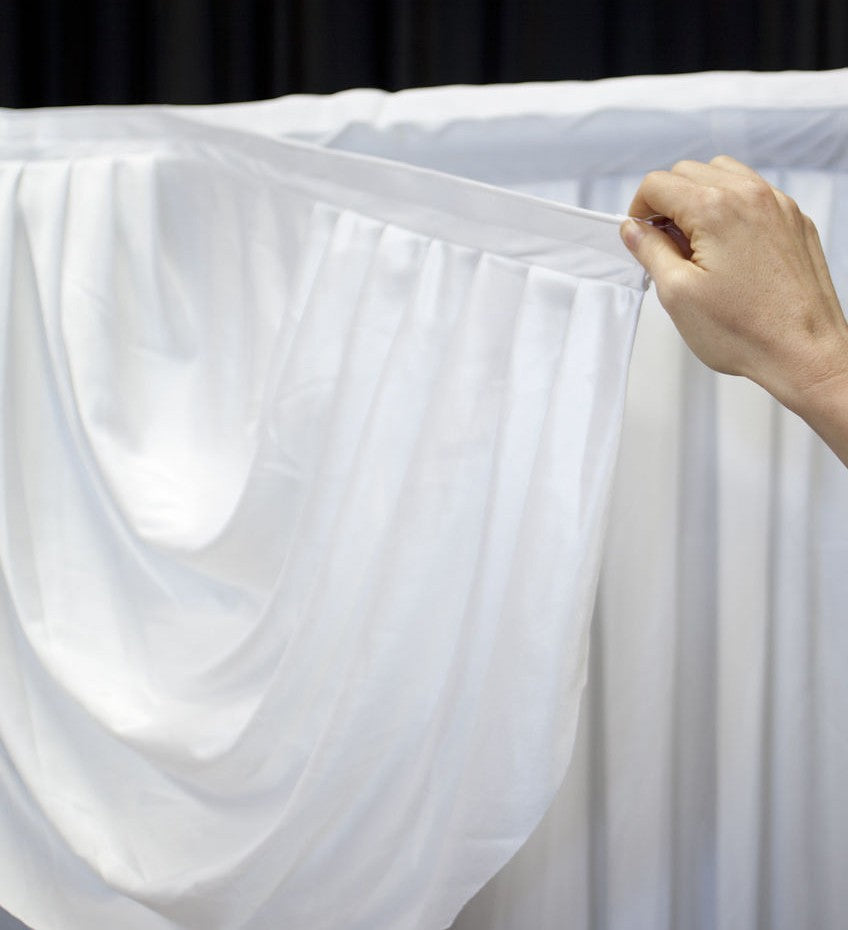 Lycra Backdrop Convertible Panels 1.6x3m - Black, three panels gathered to create 3x3m backdrop