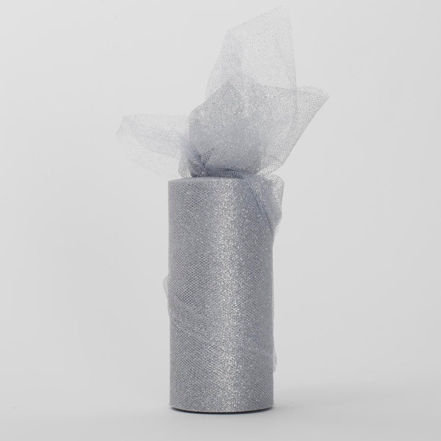 CLEARANCE Glitter Soft Tulle Fabric Roll - Silver (15cmx22m)