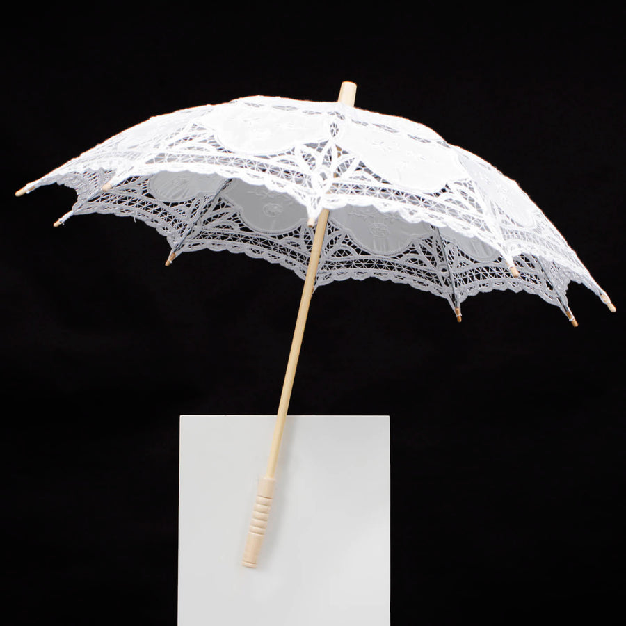 White Lace Fabric Wedding Umbrella Parasol Closed