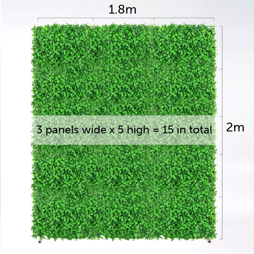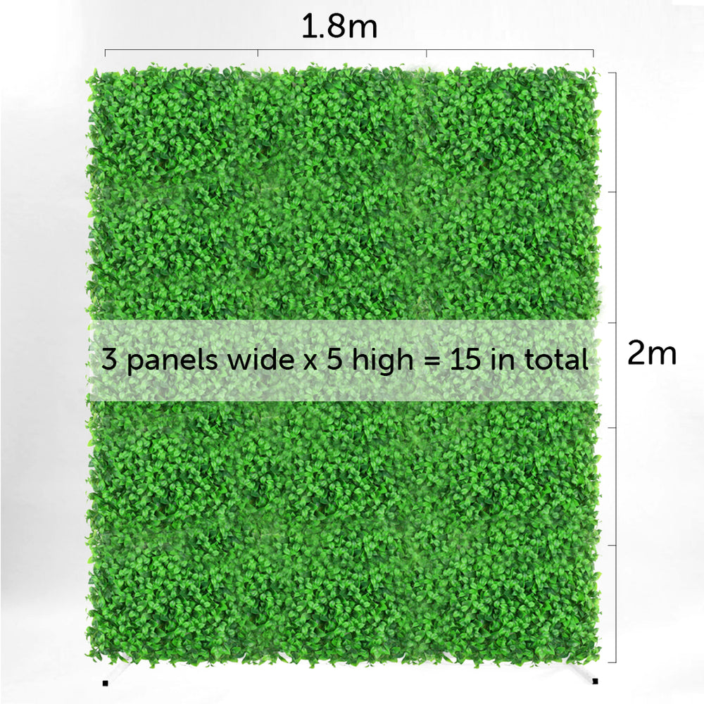 Greenery wall combo measurements 1.8m wide by 2m high uses 15 panels