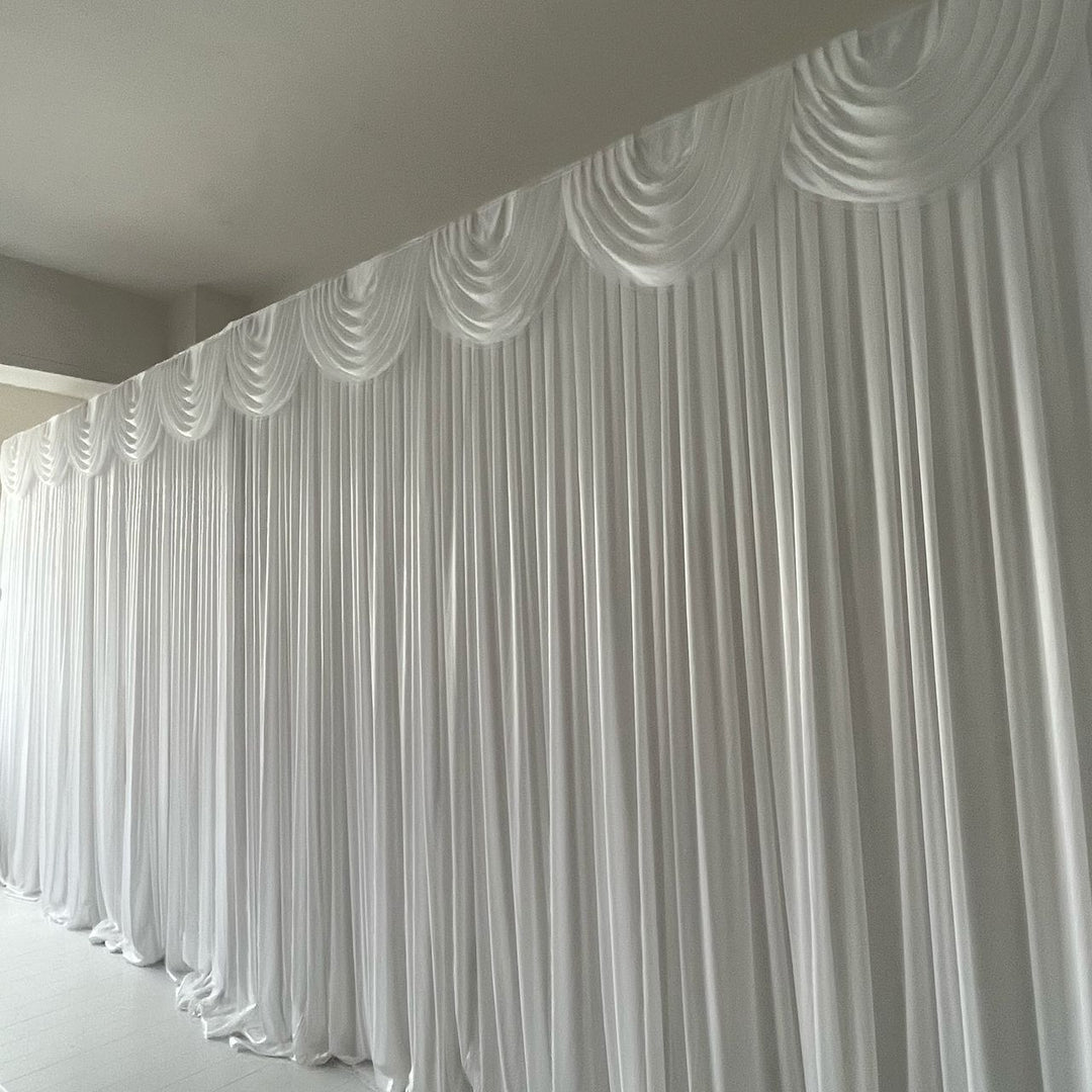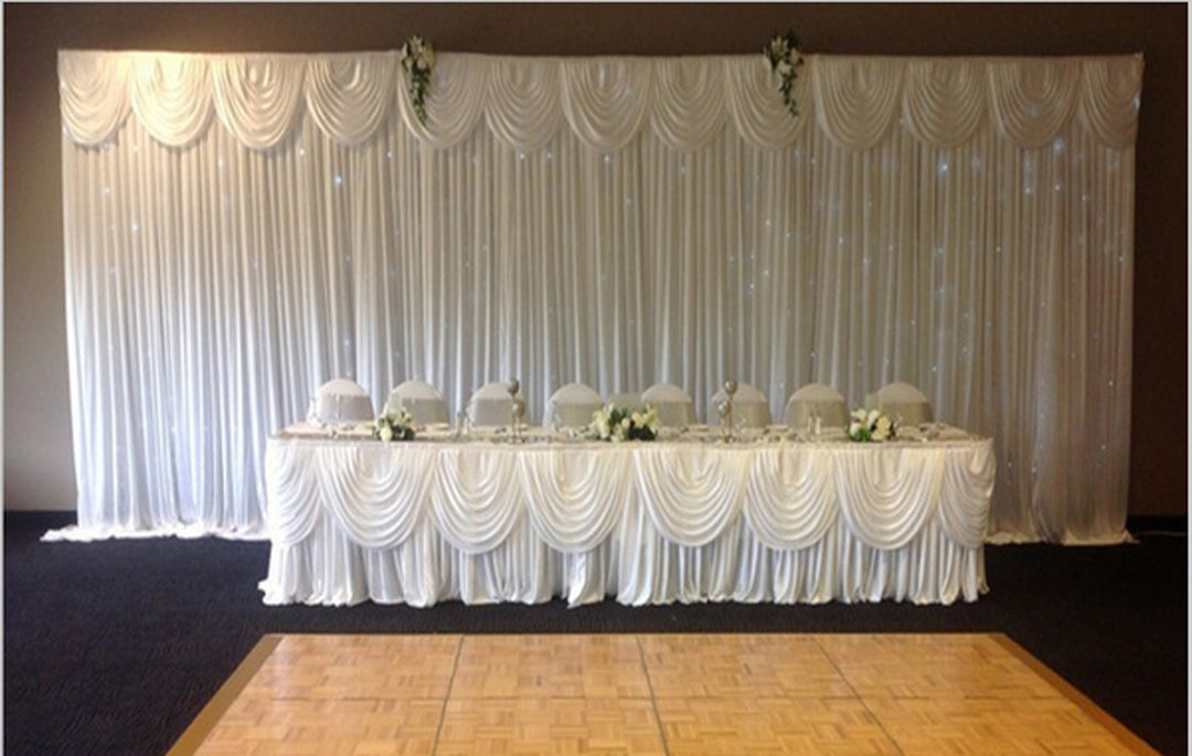 BONUS Detachable Swag: All our Ice Silk Satin skirts come have a detachable white swag with velcro backing as standard. See photos for how it works. You can also purchase coloured swagging and 1x3m Coloured Backdrop Panels to create a layered look and to mix and match colours for different event themes!
